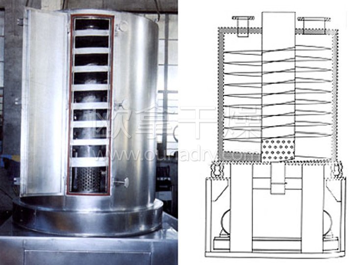 ●物料沿螺旋床自下而上作圓周運動的同時,自身也產(chǎn)生跳躍,從而增加了物料與熱風(fēng)的接觸,增強(qiáng)了干燥效果。